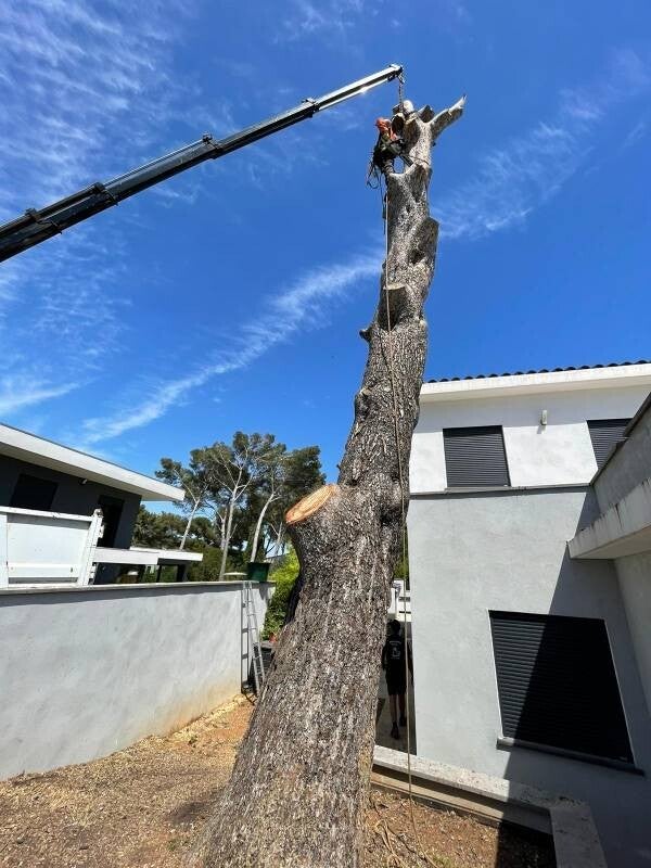 L’abattage est envisagé quand une simple taille ne suffit plus. Chaque intervention est réalisée avec prudence selon l’accès, la hauteur de l’arbre et la proximité d’une maison, d’un jardin, d’une clôture ou d’une voie de passage.